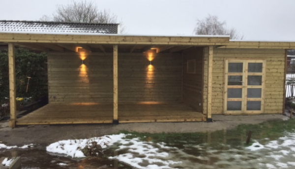 Een andere optie voor uw houten overkapping in Drenthe, is de overkapping met zadeldak. Wanneer u deze overkapping plaatst, kunt u de daklijn van uw woning aanhouden. U creëert dan een rustig geheel. Het voordeel van dit model is dat u de nok van het dak kunt gebruiken als extra opbergruimte. De achterwand en de zijwanden kunnen dichtgetimmerd worden om meer privacy te creëren en wilt u ook in de winter heerlijk buiten kunnen zitten, dan is het ook mogelijk om met een glazen schuifwand de voorzijde van de overkapping af te schermen. In de winter kunt u dan heerlijk bij de kachel genieten van een kopje warme chocolademelk.
